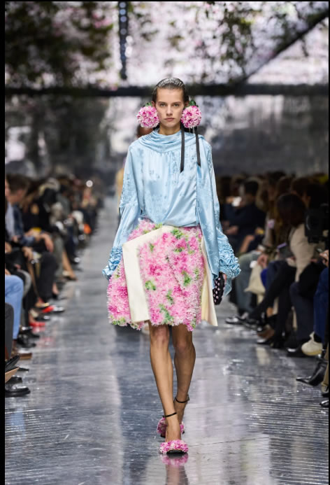 Silhuete su kombinirale volumen i eleganciju – od plisiranih „bubble“ haljina s krinolinama do laganih čipkastih modela koji naglašavaju pokret i lakoću. Kolekcija također uključuje luksuzne dodatke poput velikih kožnih torbi, elegantnih clutch torbica i nakita izrađenog od oslikanog aluminija.